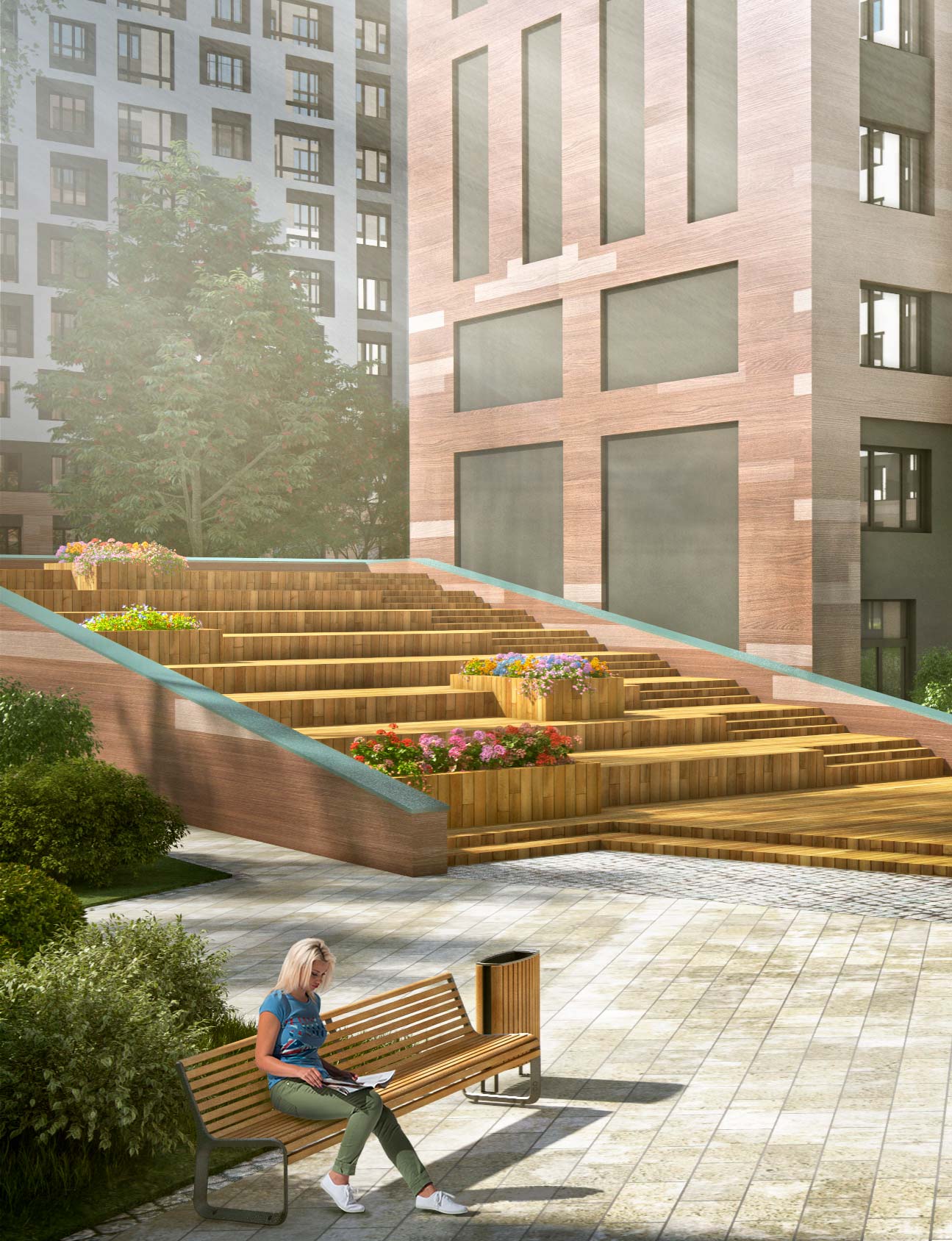 Прямо в микрорайоне скоро появится Бизнес-парк Garage с многоярусным паркингом, кафе, аптекой и офисными зданиями. Возможно, кто-то из жильцов и работать будет недалеко от дома. Чтобы просто прогуляться, тоже ехать никуда не нужно: продуманное озеленение в «Образцовых кварталах» от цветов до полноценных крупномерных деревьев позволит вдохнуть свежий воздух и почувствовать себя на отдыхе, просто выйдя из дома», - описывает проект Елена Тян.